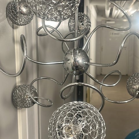 15 armad taklampa med trådspunna glaskupor går utmärkt att koppla med dimmer. Kostade 3800 vid inköp