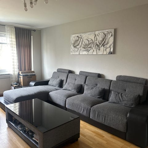 Rymlig och skön hörnsoffa, inköpt på Fynda i Falkenberg 2013. Nypris 13000 kr. Soffan är i gott skick men är använd ofta och har vissa mindre slitage. Bilder på slitaget finns men är inte med i annonsen.