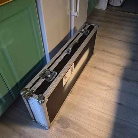 Harley Benton gitarr flightcase. Yttermått: (BxDxH) 110x40x17cm, innermått: (BxD) 104 x 34cm. Har karvat lite i vaddering för att få plats med Gibson Firebird 107cm. Kan eventuellt skickas via mitt jobb ifall du har företagsadress den kan skickas till.
