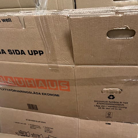 Vi säljer våra använda 36 flyttkartonger. De säljes endast alla samtidigt. Det är en blandning av olika fabrikat.