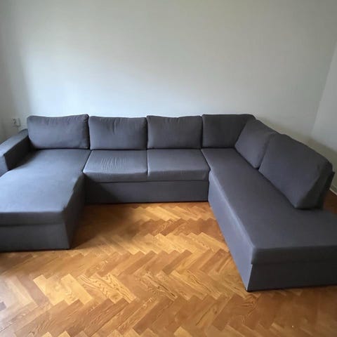 Rymlig soffa med divan & nackkuddar