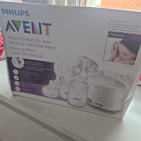 Elektrisk bröstpump från Philips Avent. Sparsamt använd. Naturligtvis diskad och steriliserad. Flaska ingår ej (Philips avent-flaskor passar till).