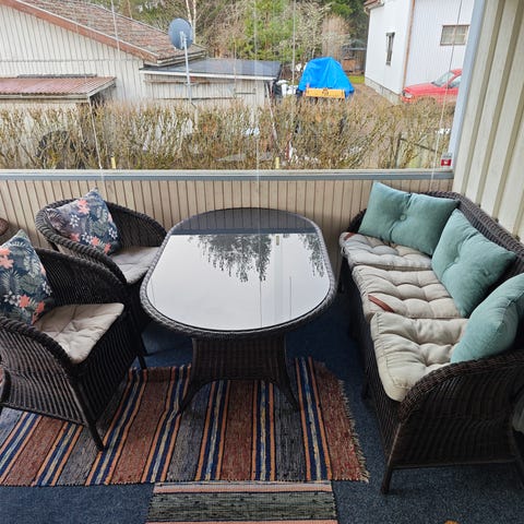 Säljer ett lounge set från Jysk, använt 1 sommar på inglasad balkong. Mycket fint skick.
