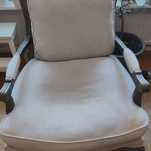 Säljer en gul fåtölj pga flytt. Inköpt för ca 1 år sedan, har alltid haft en filt över sig. Mest stått som prydnad inte använd mycket.