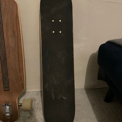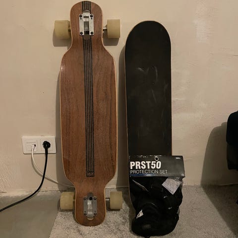 En longboard som blivit körd mindre än 10 gånger på en sommar och sedan stått i källaren och inte blivit rörd. Inga större skador eller repor förutom det som syns på undersidan på bilden. :- 350kr