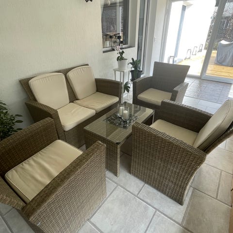 Säljer utemöbler som har stått ute men de är hela och går att sitta på men inte i finaste skicket, dynorna är solblekta med. Därmed det billiga priset.
