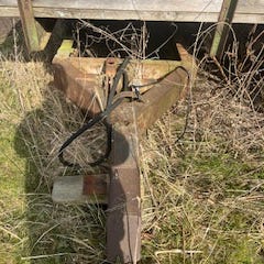 Vagnchassi med två hjul, lämpligt för lantbruk eller transport efter traktor eller annat dragfordon. Konstruktionen är i metall med dragstång framtill och hjulupphängning bak. Hjulstorlek enligt märkning på däcksida: 7.50–18. Längd 2,80m bredd 1,7m
