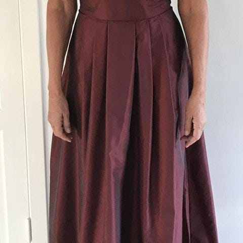 Mycket fin balklänning i ett underbart tyg, med pärlor som pryder framsidan. Underkjolen ger ett vackert fall på klänningen. En schal följer med. Klänningen är en liten storlek 40 med bystmått Max 90 cm och midjemåttet Max 76cm. Klänningen är använd en gång. Kom och prova den, eller också skickar jag den med posten mot portokostnad.