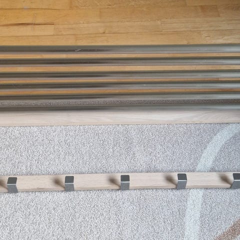 Snygg hatthylla som är lite använd. Bra skick. Bredd är 61.5 cm (enligt tillverkaren 60 cm)