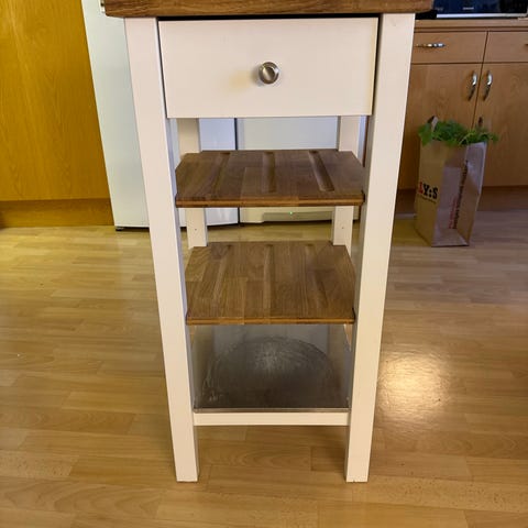 Köksvagn/serveringsvagn i väldigt bra skick, dock utan hjul men det går att köpa till. Märke SoBuy. Nypris ca 1500.