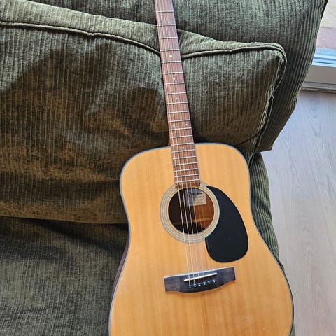 Detta är en 12-strängad akustisk-elektrisk gitarr av modellen Taylor 150E