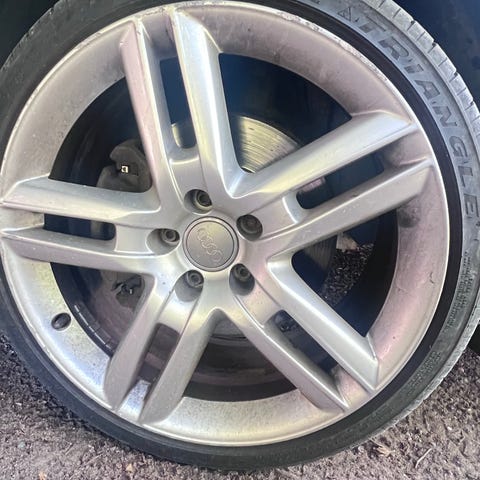 En uppsättning 16 tum fälgar med dåliga däck suttit på en Volkswagen Golf.