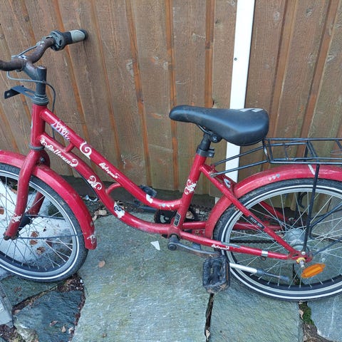 Cykel till barn 100-130cm. Repor finns lite överallt efter alla vurpor, finns ingen bakreflex, 1:ans växel fungerar inte men är säkert bara justera växlarna. 2-3 an fungerar.