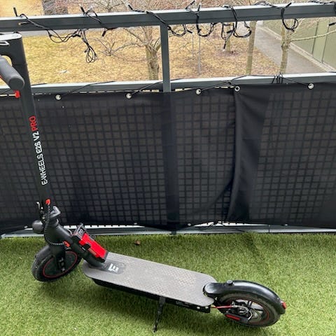 Jag vill sälja min e wheels för att jag har köpt en ny elspark. Den är i helt nytt skick har inga problem. Den är bara lite smutsig här och där som man kan ta bort. När den är fulladdad så har den en total räckvidd på 70km och en full laddning tar ungefär 3-4 timmar. Den är bakhjulsdriven med en motor på 1300 watt och har en topphastighet på 40 kmh. Den är väldigt snabb och kraftfull för att komma upp från uppförs backar. Det ingår en laddare till den.