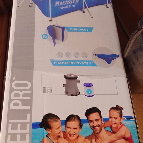 🔹 Innehåll: Pool, ramdelar, filterpump, filter och tillbehör (se bild)