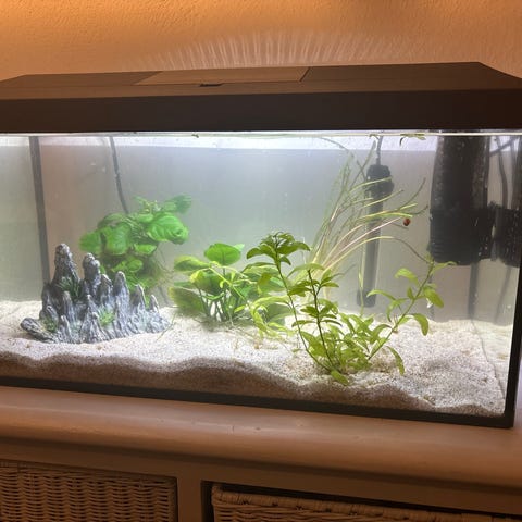Akvariet är nästan helt nytt, använt i endast 2 månader och mycket fint skick! Detta är perfekt för nybörjare eller dina barn.