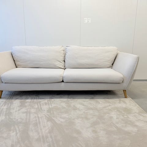 3 sitsig soffa med brun tyg. Soffan är gott i skick. Den är mycket ren och välskött. Soffan är väldigt bekväm att sitta på. Det finns inga skador eller fel. Måtten är 228 cm bredd 65 djup 60cm höjd.