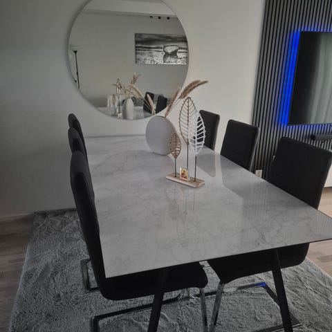 Matbordet är i nyskick och har alltid varit täckt med plastskydd.