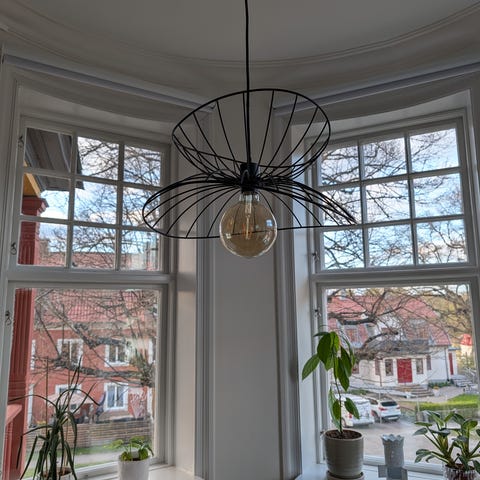 Fin taklampa i svart metall. Köpt på bauhaus.