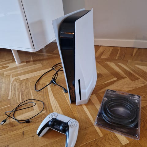 En fin PlayStation som kom med två kontroller, allt fungerar som det ska men bara en av kontrollernas lampa lyser men den ansluter inte, jag vet inte varför. Kvitto finns.