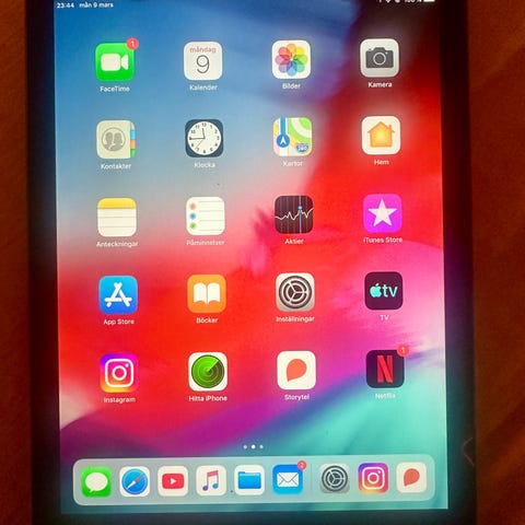 Ipad generation 6 i mycket gott skick. 32gb, IpadOS 17.7.7. Återställd och utloggad från iCloud, bra batteritid.