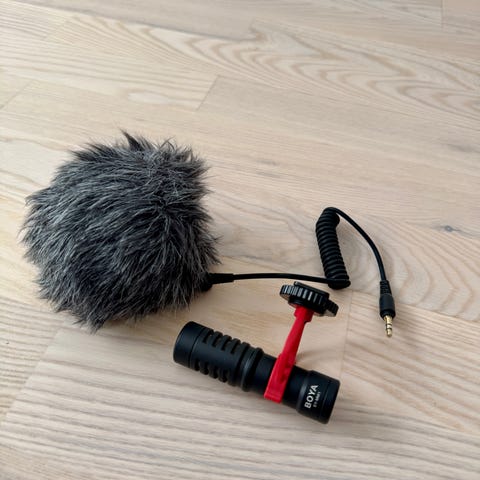 Säljer en Boya BY-M1 lavaliermikrofon, en välkänd modell som används av många innehållsskapare, journalister och föreläsare när man behöver rent och tydligt ljud utan avancerad utrustning.