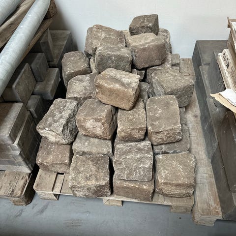 Gammal fin gatsten. Vältrampad från svensk kyrkomiljö. Finns ett hundratal uppskattar jag det till - räknas vid avhämtning. 7kr/st