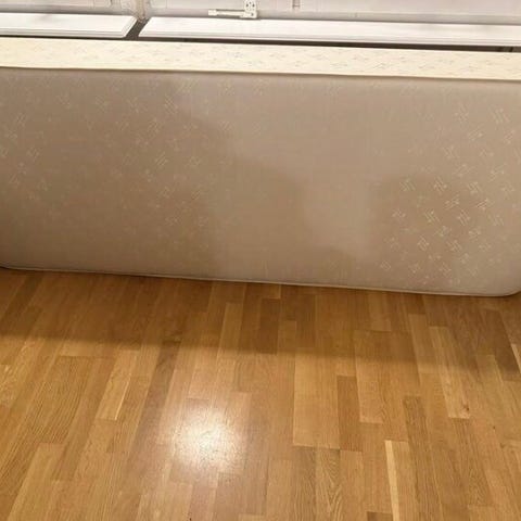 Skön och fast resårmadrass men med missfärgat tyg på sidorna. Hämtas snarast.