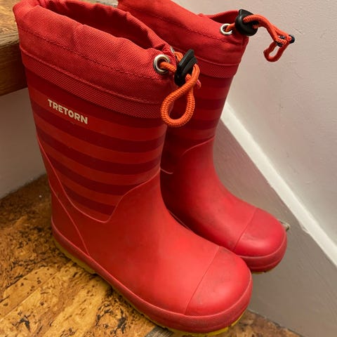 Röda gummistövlar från Tretorn storlek 31 i fint skick. Svagt namnade på insidan. Från djur- och rökfritt hem.