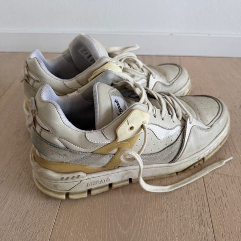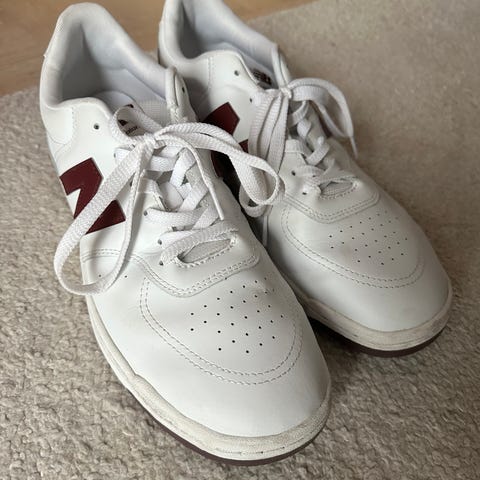 Skorna är i använt men fint skick. Viss förslitning på Adidasränderna på yttersidan på vänsterskon, se bild. Skonsnöret på vänsterskon kan också behöva bytas. Inget som påverkar komfort eller användning.