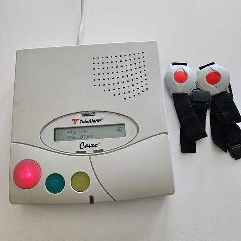 En helt otrolig minifinder med 4G kort inbyggt så att personen både kan ringa ut från enheten mer är närstående eller personalen lätt också kan nå personen som bär den. Endast några månader gammal så det är lång garantitid kvar på den.