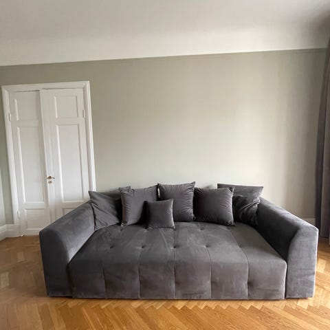 Säljer en grå Sweef Grizzly bäddsoffa i fint skick. Bekvämt sittdjup för mysigt soffläge!