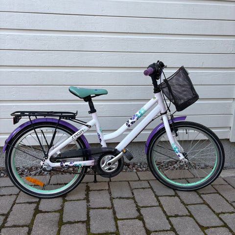 Barncykel 20 tum Monark i Fint skick. Handbroms, fotbroms, pakethållare, cykelkorg, ringklocka, reflexer på hjul och bak skärm. Mycket stabil cykel. Vacker färg.