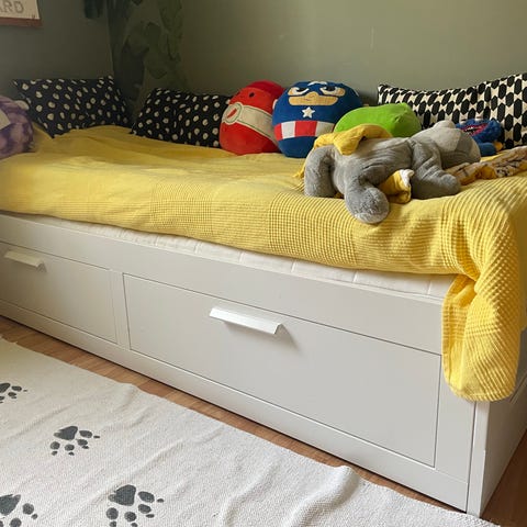 Praktisk barnsäng/ungdomssäng i fint skick från IKEA säljes. Sängen har inbyggd förvaring med rymliga lådor och ribbotten. Madrass ingår.