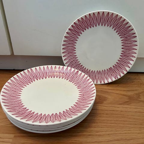 Gustavsberg assietter i porslin med blått och vitt motiv. Baksidan är märkt med text om Svenska Porträttsällskapet, årtal samt uppgift om begränsad upplaga. Tallrikarna är runda med dekorativa motiv på framsidan och är avsedda som assietter eller samlartallrikar. Passar för servering av mindre rätter eller som prydnadstallrikar.