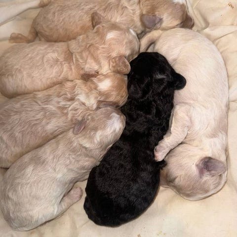 Valparna är en fin kombination av vår egna mini-malteser (mamma) och en lånad aprikos toypudel (pappa) – en uppskattad mix som ofta ger små, intelligenta och mycket sällskapliga hundar.