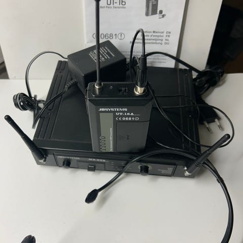 Sennheiser EW300 G2 trådlöst mikrofonsystem bestående av rackmottagare EM 300 G2 och matchande bodypack-sändare. Systemet är ett true diversity-system med frekvensområde 786–822 MHz. Mottagarna har bakre anslutningar för antenner, XLR-utgång, teleutgång och nätanslutning. Bodypack-sändarna har display, antenn och standardmikrofon-/line-ingång.