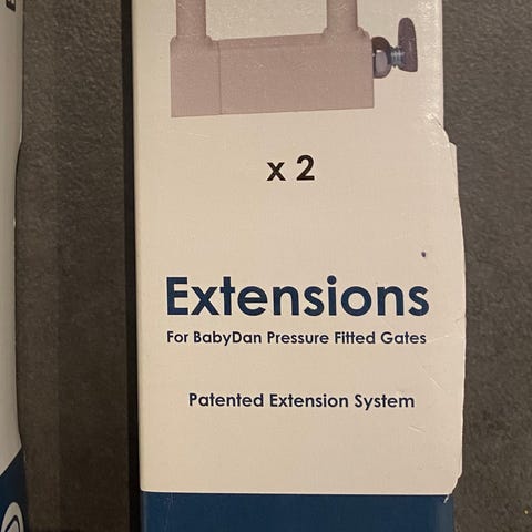 Säljer även en BabyDan Extend A Gate med 2 förlängningar förlängnings-kit 7-14 cm. Medföljande även extra delar, tre extra vertikala rör samt ytterligare delar för förlägning på en sida.