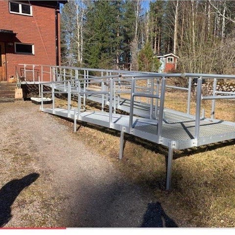Badstege/ bryggstege/ båtstege gjord i aluminium för flotte, brygga eller kajplats. Mycket rejäl och stark konstruktion som gör det lätt att komma ner i och upp ur vattnet eller när du ska stiga av och på din båt. På bilderna står den lutad mot en stomme till en studsmatta som givetvis inte ingår.