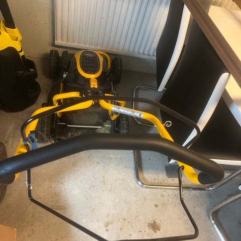 Stiga gräsklippare i gul/svart utförande. Bensindriven modell med handtag och hjul anpassade för klippning av gräsmatta i trädgård. Klipparen har motor placerad ovanpå chassit och är avsedd för användning på villatomter och liknande grönytor. Passar för klippning av gräs på plana eller lätt kuperade ytor.Klippare med elstar,drivning och uppsamlare.