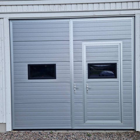 Denna port är klockren om ni saknar överhöjd som en garageport eller vikport behöver.