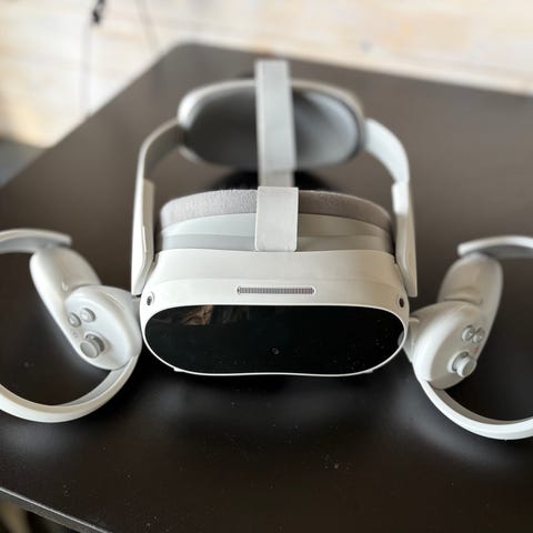 Headsetet har inbyggda linser och sensorer framtill. Passar för användning till VR‑spel och upplevelser.