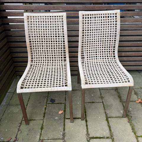 Stol i plast i lindblomsgrön färg. Passar till uteplats/balkong/trädgård/matplats.