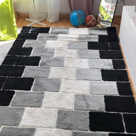Mio matta i patchwork-mönster i flera färger. Rektangulär modell med tryckt orientinspirerat mönster i olika rutor. Passar exempelvis i vardagsrum, sovrum eller hall som golvtextil och inredningsdetalj.