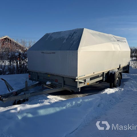 Släpet har hel bakramp med stödben för lastning och lossning samt öppningsbar och uppfällbar kåpa. Lastutrymme (innermått flak) cirka 3800x1820mm, total längd: 5450mm, bredd: 2300. Totalvikt 1200kg, maxlast 900kg. Godkänd besiktning fram till 2028-03-31. Nya bromsbackar, bromsvajer samt kulkoppling. Årsmodell: 1995