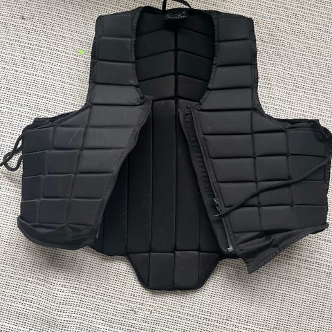 Helt ny säkerhetsväst som jag bara testat alltså inte ridit i (lappar är kvar). Kände att jag behöver en annan storlek men glömde helt att skicka tillbaka den😬