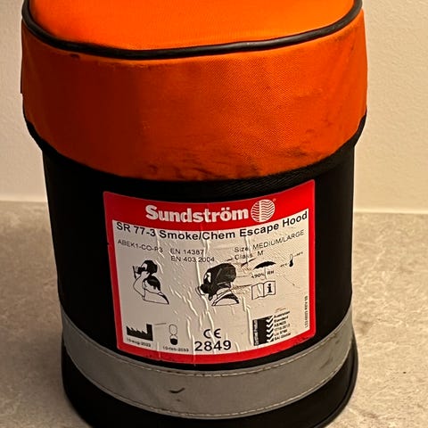 Säljes en ny och oanvänd skyddsmask sk. Flykthuva från Sundströms