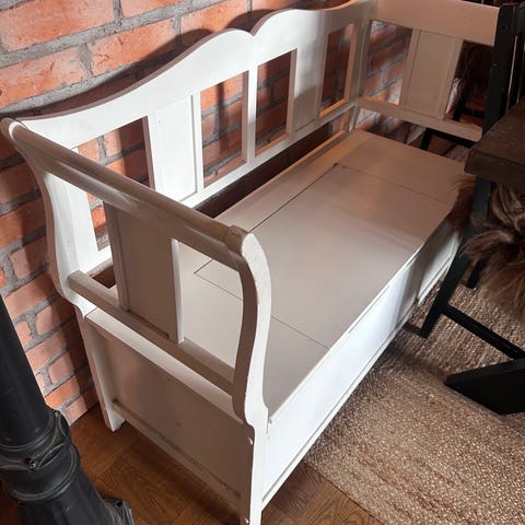 Bänk vit trä med armstöd