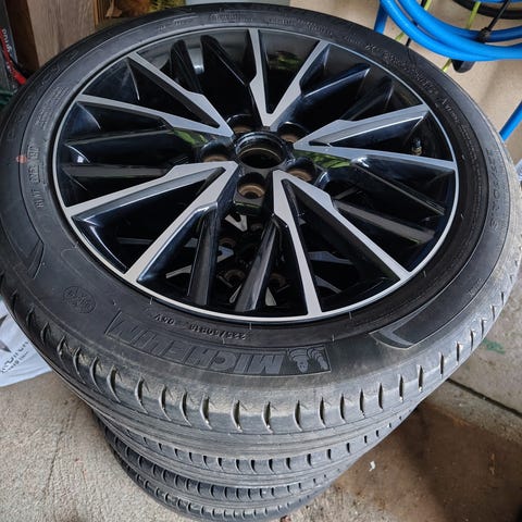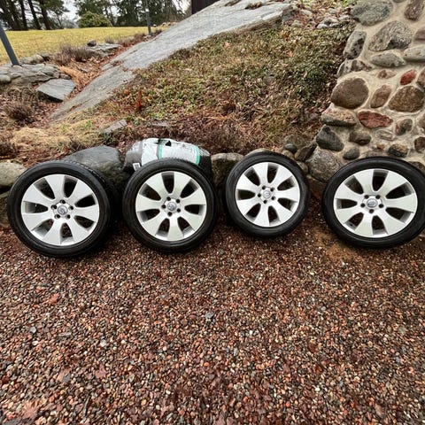 Michelin däck med fälg (Volvo) 225/50 R17 Primacy. Mönsterdjup 5 mm. Årtal 2022 Vecka 10 . Sparsamt använda och i bra skick. Se bilder. Hämtas i Skene och Skickas ej.