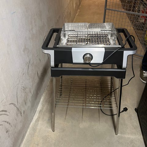 Elgrill mått 52x26 djup 50 med tillhörande grillvagn 72x40 med hyllor utfällda 72x135 fungerar lite rostig.